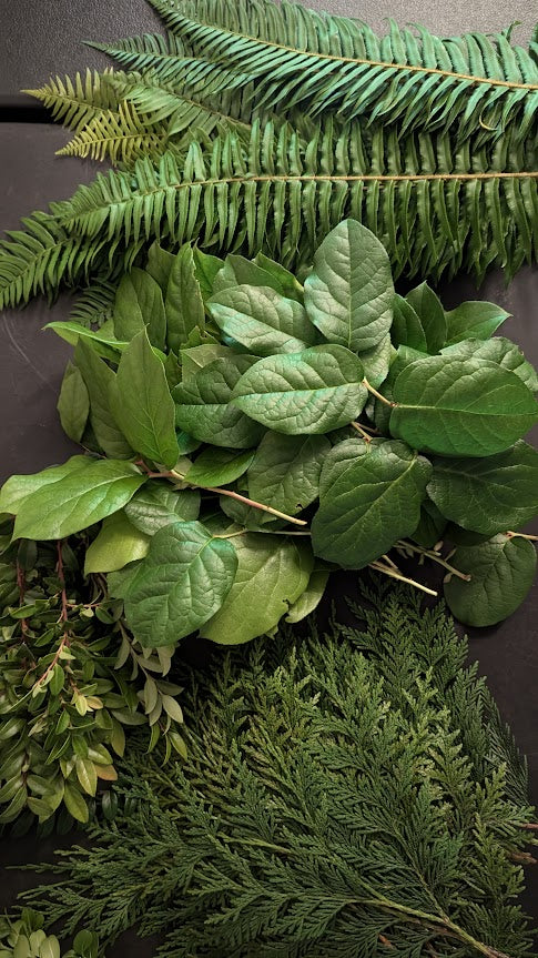 Each bucket of Bulk Greens and Botanicals includes #60 stems of foliage and texture that is great for use in arrangements, installations or table garlands.